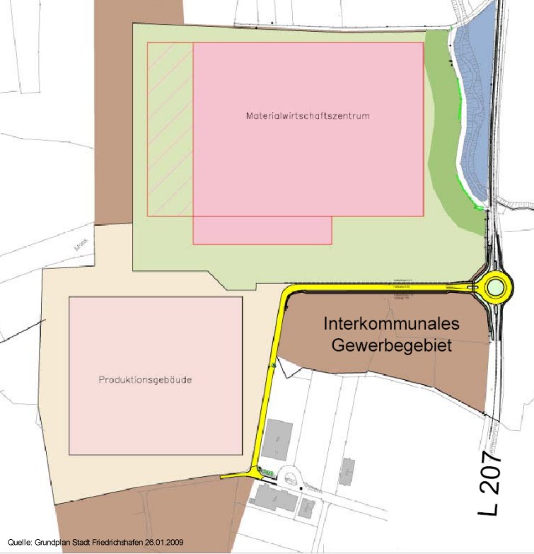 Gebäudeanordnung des geplanten Gewerbegebietes (Stand Januar 2009)